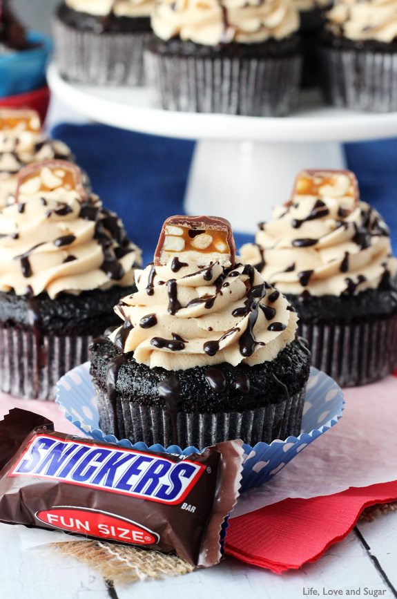 Chocolate cupcakes, peanut butter frosting, caramel sauce…simple but effective. This is another spin on what could be endless combinations of classic Snickers ingredients turned into a cupcake. You could even flip things around and do a peanut butter cupcake with chocolate frosting, or chocolate cupcake with caramel frosting and peanut butter drizzle.