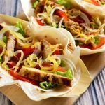 - Fill each tortilla with chicken strips, salad greens, tomatoes, onions, and pickled papaya relish.