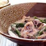 Perfectly cooked tender calamari in a highly savory coconut cream sauce. The touch of cayenne really balanced out all the richness of this dish.