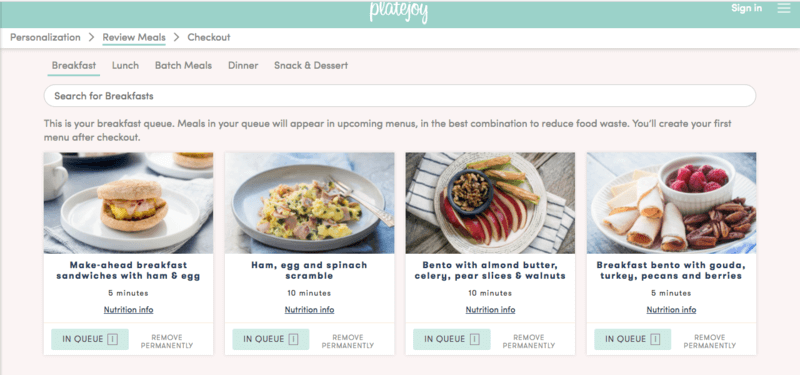 PlateJoy is a service designed to save you money, energy, and time. They aren’t a “kit” like the ones above. Instead, the company uses your preferences to create a customized meal plan for you and your family.